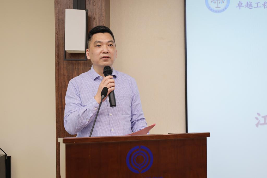 院学生会团学事务部副部长彭佳乐介绍第十四届“英飞凌”卓越工程师训练营开展情况。本届训练营继承和发扬校企合作的特色和优势,设置团辅破冰、梦想起航、专业领航、职业导航等环节,让营员们在丰富多彩的活动中树立崇高理想、找准努力方向、开展职业规划,志存江南梦、践行物联梦。