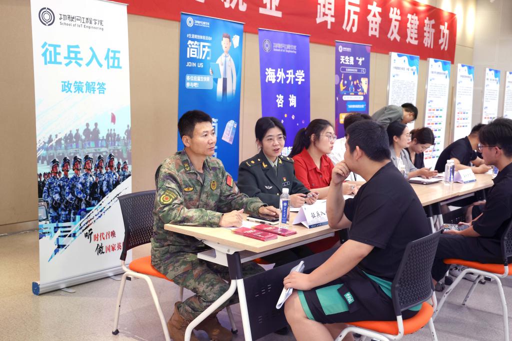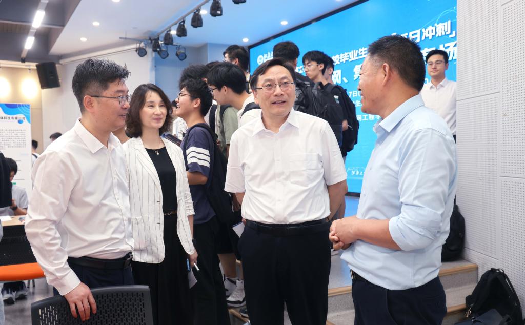 院长栾小丽,集成电路学院院长顾晓峰,学生工作处副处长单筱婷等校院领导深入招聘会现场,与用人单位代表深度交流,详细了解招聘单位的用人需求,探讨未来校企合作的努力方向;与毕业生代表亲切对话,深入了解毕业生的求职进度,鼓励同学们抓住机会、积极行动,发挥优势顺利找到心仪工作。