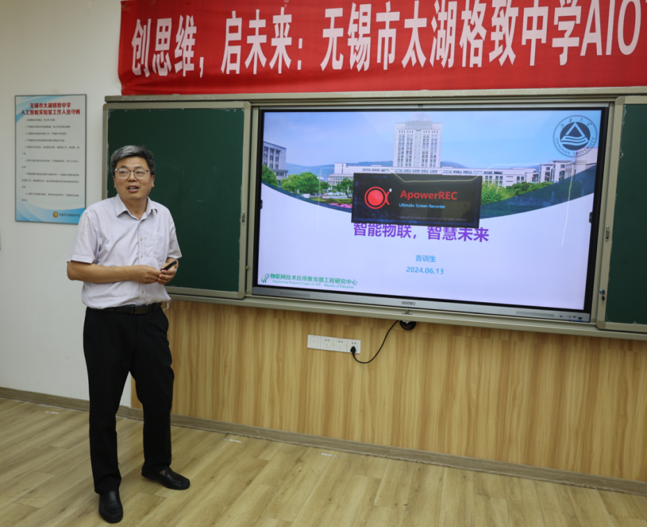 信息技术系主任吉训生教授为学生们带来了题为《智能物联智慧未来》的精彩分享。他深入浅出地介绍了物联网技术的技术架构、应用领域和未来趋势。当讲述到我们所处的IT(信息技术)时代正在悄然转变为DT(数据技术)时代时,学生们的眼睛闪烁着浓厚的兴趣与好奇,仿佛一个充满无限可能性的新世界正在他们面前徐徐展开。