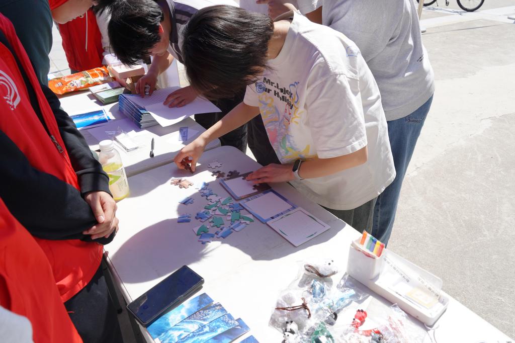 现场活动设置三大特色板块。“水知识大富翁”将传统游戏与科普结合,参与者通过掷骰子触发“挑战”“奖励”等板块,回答“最节水的灌溉方式”等专业问题。“水图拼绘”环节以节水标志、旱区实景及冰川消融为主题设计拼图,其中节水标志因独特寓意引发思考。“滴水可寻”环节通过视觉设计强化节水认知,参与者在满屏“水”字中寻找隐藏的“小”字,耗时数分钟的挑战过程让不少同学感受到水资源的稀缺。