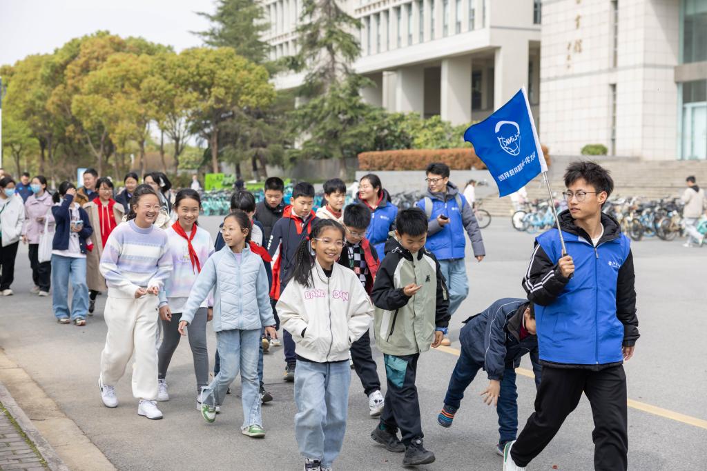 公益图书馆,通过讲解了解了其历史沿革与现代图景。随后,在赤马咀遗址,曲水流觞的人文景观与樱花盛放的春日画卷相映成趣;食品科学史馆内,孩子们通过实物展陈与数字展项纵览食品学科发展的脉络。人文底蕴与科学精神的交织,悄然点燃了少年们对高等学府的憧憬。