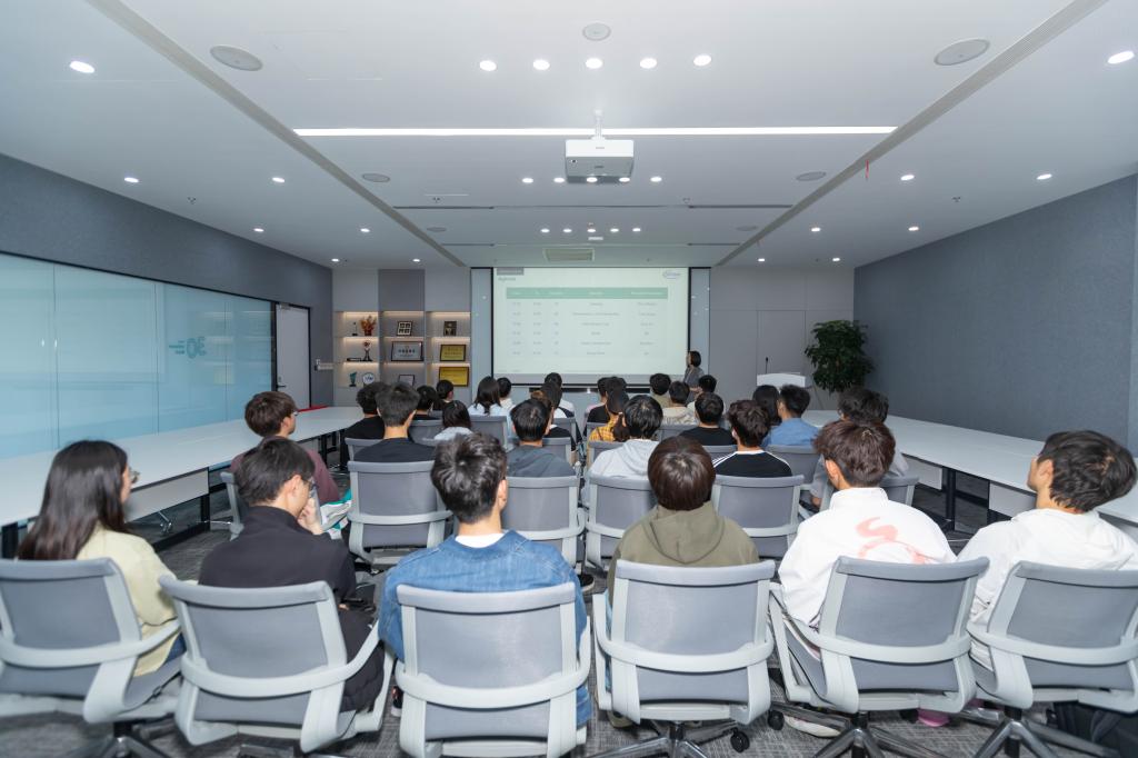 参观结束后,施雯结合自身丰富的招聘经验,为同学们带来一场实用性很强的职业规划与就业指导专题讲座。她围绕大学生最为关心的职业选择问题,深入浅出地分享了“职业目标=个人兴趣+可迁移技能”的择业理念,鼓励同学们挖掘自身兴趣、找准自身定位、提前科学规划,为未来的就业做好充分准备。