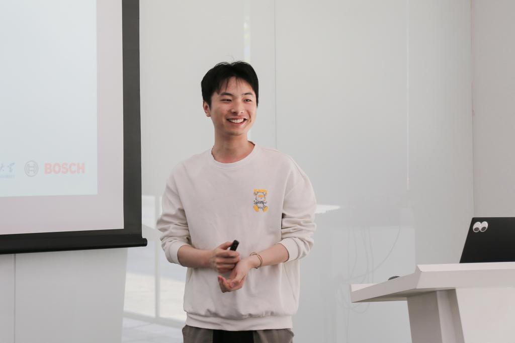 随后,史伟杰现身说法,以“过来人”身份讲述职业成长故事。他从自己的择业经历出发,介绍了选择博世的理由,以自身职业轨迹为坐标,分享了从校园到职场的进阶路径。他指出“在博世,技术研发与产业落地始终并行,从算法优化到产线部署,每一步都能感受到博世对技术严谨性和商业价值的双重追求,完善的技术培训体系、以人为本的日本动漫,为新人提供了快速成长的土壤。”面对学弟学妹,他真诚呼吁建议:“博世既有百年企业的技术积淀,又有拥抱变革的敏捷基因,如果你渴望用技术创造影响力,博世一定是值得加入的‘梦想实验室’。”