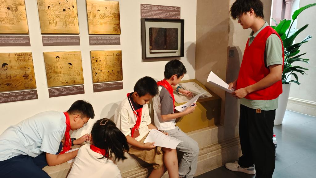 志愿讲解与新苗培育:构建跨代际传承闭环。在常州三杰馆指导老师的专业培训下,实践团成员聚焦语音语调、肢体表达、史料延展等维度下苦功,按“熟文本、炼表达、析内涵、审细节”的流程通过考核,拿到了属于自己的讲解员“上岗证”。他们认真对待每一场讲解,用心回应每一名观众,这支身着红马甲的00后志愿讲解员队伍,已然成为常州三杰馆里一道明媚动人的风景线。同时,实践团成员深度参与常州三杰纪念馆“红领巾讲解员”的培训工作中,逐字逐句帮少先队员打磨讲稿,用情景剧形式还原历史场景,通过“大手牵小手”的方式,将红色基因的种子悄然种下。培训中,一名扎马尾的少先队员指着讲解词问道:“我们如今的幸福生活,是不是先烈爷爷们奋力守护的愿景?”这一追问,让团队成员深切体悟:传承并非单项的理念灌输,而是当少年对历史主动探索时,将“勇毅担当”“家国情怀”内化为价值认同的自觉行动。这份传承的厚重,既映照在少年澄澈的眼眸中,更镌刻在一代代人接过精神接力棒的担当里。